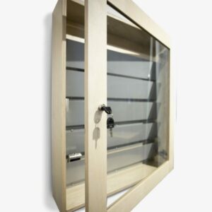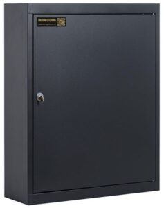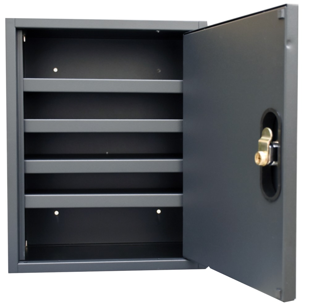 - Skabet monteres på væggen og er forberedt til “postkassecylinder” således jeres eksisterende Ruko / ASSA ABLOY nøglesystem kan benyttes. Kan også monteres med en “stand alone” Ruko cylinder hvor nøglen kun passer til skabet. Eller leveres med et Burg låsesystem.