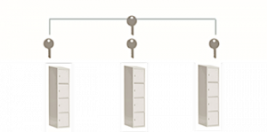 - SG smårumsskabe med Ruko/ASSA cylinderlås til sikker opbevaring af elevernes telefon, pung, nøgler, ure og andre små værdigenstande, som eleverne skal have låst inde. Eleverne har hver deres rum med egen nøgle. Derved behøver lærerne ikke at skulle vente på, at eleverne skal have udleveret deres mobiltelefon eller andre værdigenstande efter endt time eller skoledag. Skabene er forberedt for opsætning på væg.