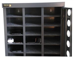 - Opladerskab til mobiltelefoner. Disse skabe er velegnet til opbevaring og opladning af mobiltelefoner.